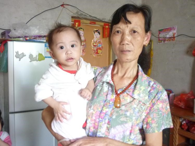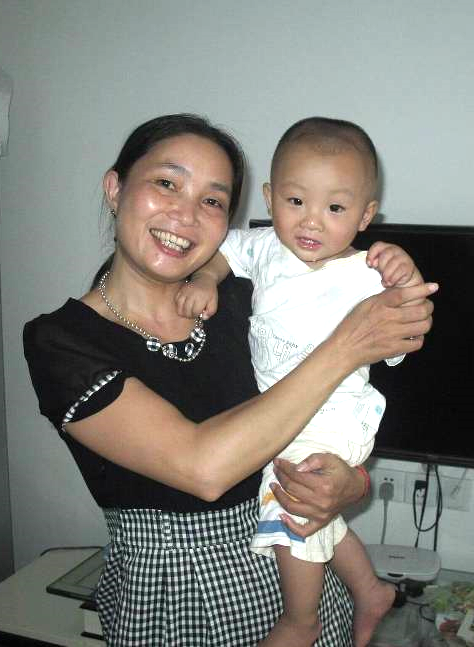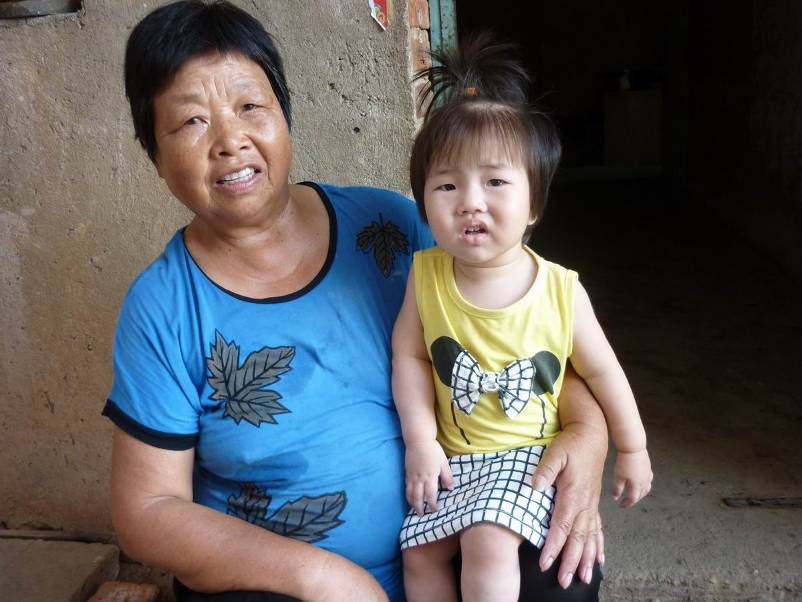 J. is growing to be a rather plump and likeable child. Her imitation ability is very good: she can imitate dancing on the television. She likes for her grandmother to play with her. Her diet is very good: every day she has three servings of milk (each serving is 240ml), a half bowl of rice, and an egg. She also eats small servings of meat, vegetable broth, tofu, and fruit. At our last visit in July 2014, Jiahong weighed 10kg and was 75cm tall. At this visit, she was 10kg and 77cm.